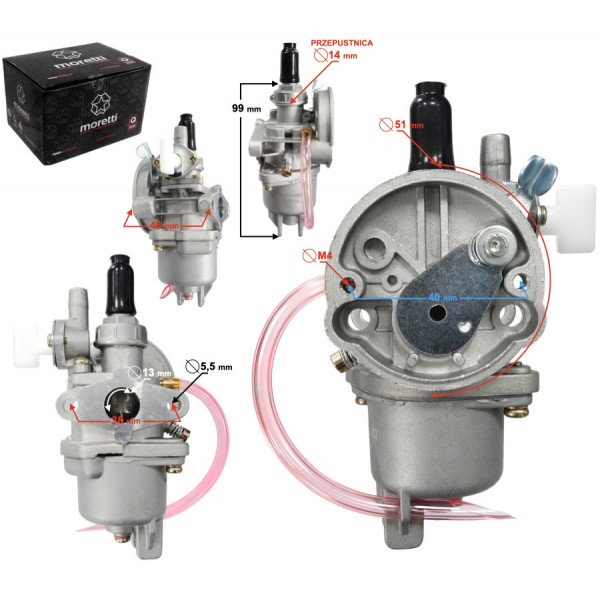 Gaźnik Moretti Pocket Bike, 50cc 4T, p.14mm, ssanie na dźwignię