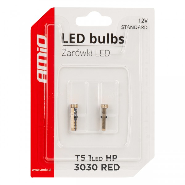Żarówki LED STANDARD Red czerwone W1W T5 12V 3030 1LED HP