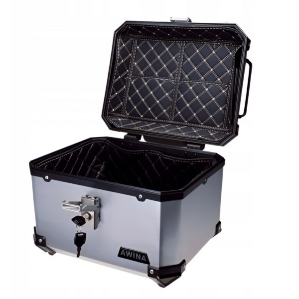 KUFER MOTOCYKLOWY 45L 43.5x38x34 cm SREBRNY AWINA